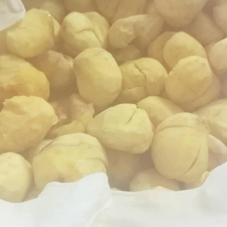 新栗を甘さ控えめのきび糖蜜に漬けた、蜜漬け栗だけ、いわゆる和菓子の栗かの子の贅沢な栗餡。