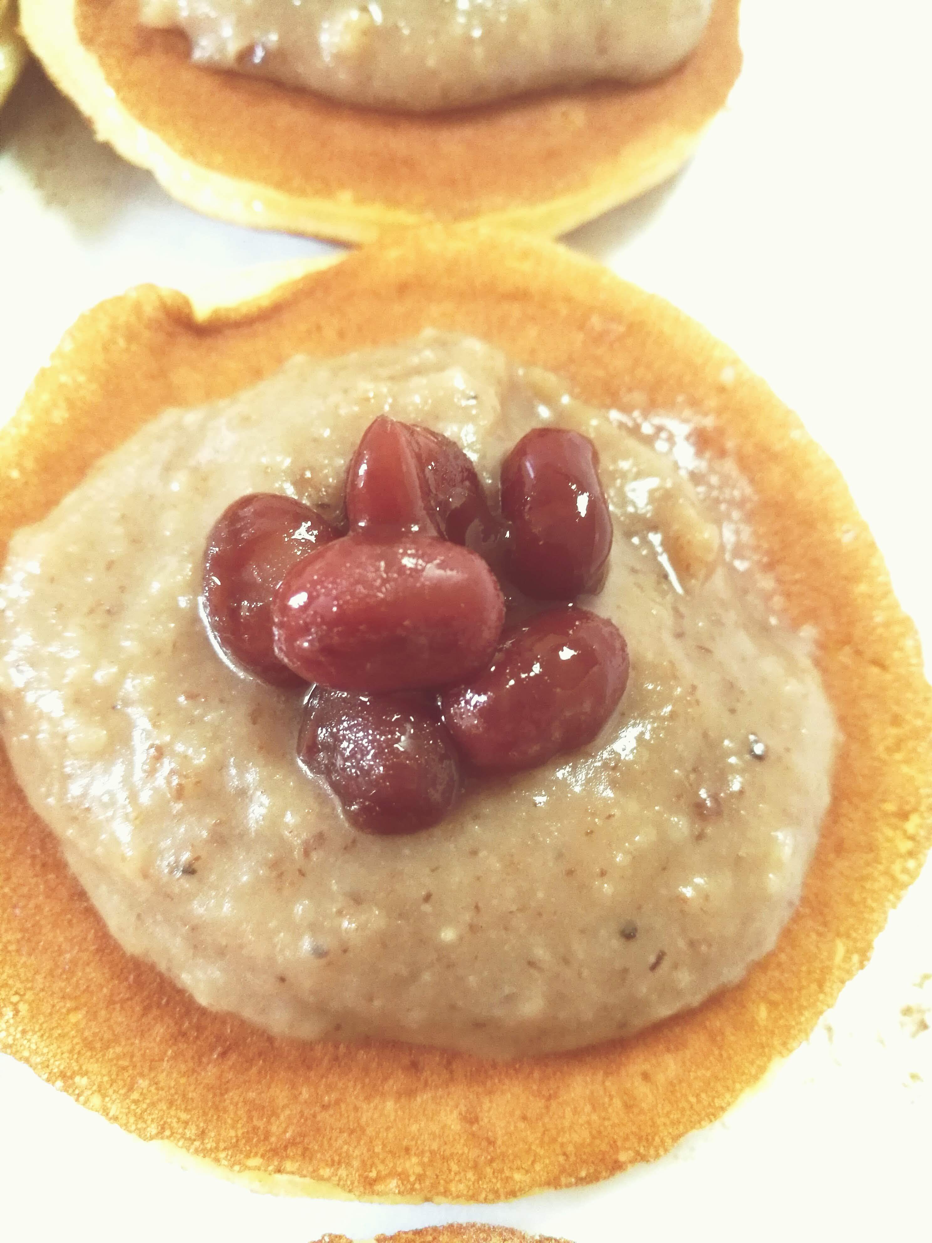 くるみ餡に、ほのかにラム酒の香る大納言粒餡をトッピングしました。
